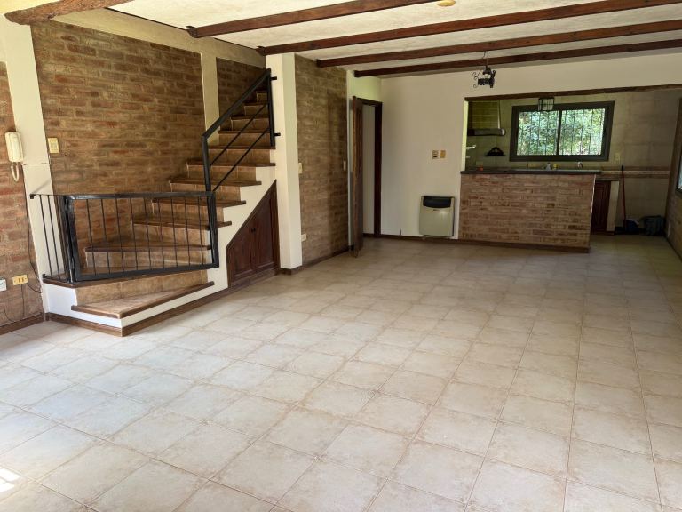 Posee un gran y amplio living comedor con estufa a leña, cocina semiintegrada, amplia y cómoda, con barra de desayuno, toilette, 2 dormitorios con placares, baño completo, un lavadero independiente. En la planta alta cuenta con el tercer dormitorio con placares y otro baño completo.