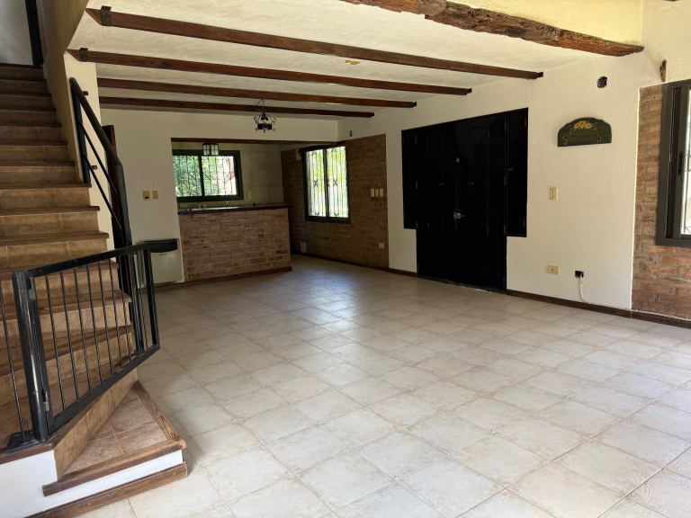Exterior: Posee un gran jardín, todo parquizado, y con gran vegetación, galería con churrasquera, piscina de material, riego por aspersión.